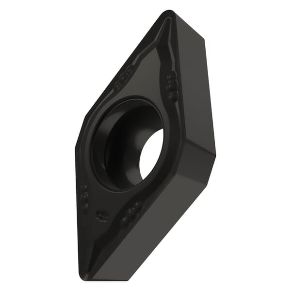 Pramet Turning Insert Pramet, DCMT Insert, 21.50.5 Insert, Diamond, 0.039 in Maximum Depth of Cut, 1/4 in Inscribed Circle, 3/32 in Thickness, 0.307 in Length, 7 Seat, Positive Rake, FM Chipbreaker, 1/128 in Corner Radius, 0.114 in Hole Dia, Manufacturers Grade: T9315, ANSI Code: DCMT 21.50.5-FM T9315, ISO Code: DCMT 070202E-FM T9315, 55 deg Included Angle, 7 deg Relief Angle, Carbide, Al2O3, Material Grade: H, K, P, For Use On: Cast Iron, Hardened Steel and Steel