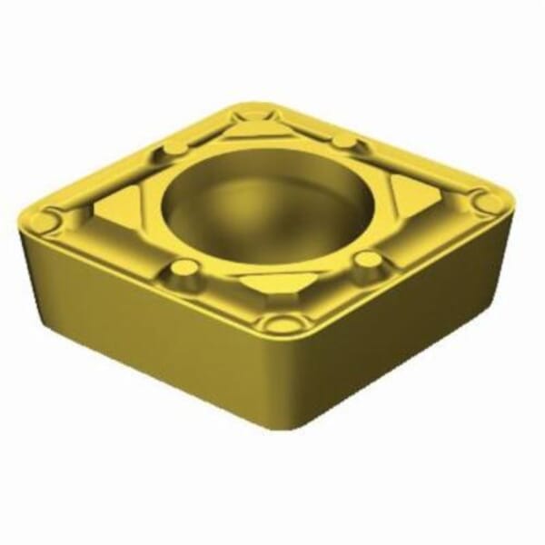 Sandvik Coromant Turning Insert, Series: CoroTurn 107, CCMT Insert, 2(1.5)2 Insert, Diamond, 2 mm Maximum Depth of Cut, 1/4 in Inscribed Circle, 0.0937 in Thickness, 06 Seat, Positive Rake, WF Chipbreaker, 0.0312 in Corner Radius, 0.1102 in Hole Dia, Manufacturers Grade: 3005, ANSI Code: CCMT 2(1.5)2-WF 3005, ISO Code: CCMT 06 02 08-WF 3005, 80 deg Included Angle, 7 deg Relief Angle, Neutral Cutting, Carbide, TiCN/Al2O3/TiN, Material Grade: K, For Use On: Cast Iron