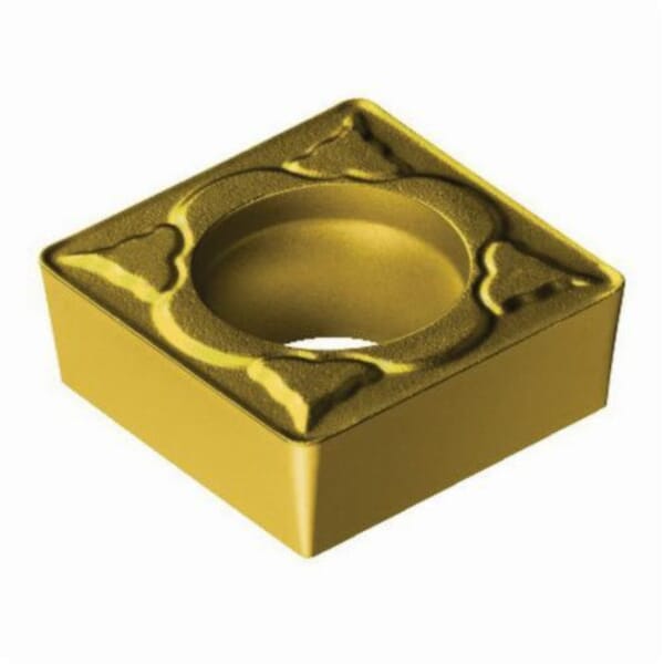 Sandvik Coromant Turning Insert, Series: CoroTurn 107, SCMT Insert, 3(2.5)2 Insert, Squared, 3 mm Maximum Depth of Cut, 3/8 in Inscribed Circle, 0.156 in Thickness, 3/8 in Width, 3/8 in Length, 09 Seat, Positive Rake, PM Chipbreaker, 0.0312 in Corner Radius, 0.1732 in Hole Dia, Manufacturers Grade: 1525, ANSI Code: SCMT 3(2.5)2-PM 1525, ISO Code: SCMT 09 T3 08-PM 1525, 90 deg Included Angle, 7 deg Relief Angle, Neutral Cutting, Carbide, TiCN/TiN, Material Grade: K, M, P, For Use On: Cast Iron, Stainless Steel and Steel
