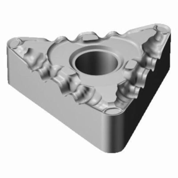 Sandvik Coromant Turning Insert, Basic Shape, Series: T-Max P, TNMG Insert, 333 Insert, Triangular, 0.059 in Maximum Depth of Cut, 3/8 in Inscribed Circle, 0.187 in Thickness, 0.649 in Length, 16 Seat, Negative Rake, PF Chipbreaker, 0.0468 in Corner Radius, 0.15 in Hole Dia, Manufacturers Grade: 5015, ANSI Code: TNMG 333-PF 5015, ISO Code: TNMG 16 04 12-PF 5015, 60 deg Included Angle, 0 deg Relief Angle, Neutral Cutting, Carbide, Uncoated, Material Grade: P, For Use On: Steel