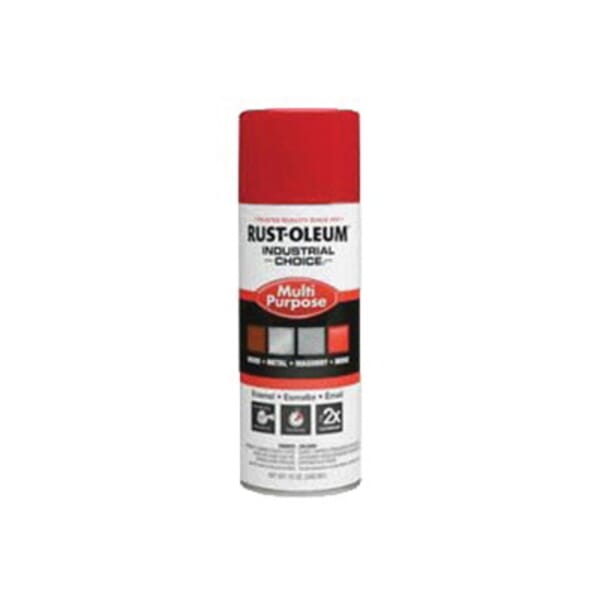 Rust-Oleum Enamel Spray Paint, Multi-Purpose, Series: 1600 System, 12 oz, Aerosol Can, Liquid, Safety Red, Gloss, 12 to 15 sq-ft/can Coverage, Chemical Composition: Acetone, Propane, n-Butane, Naphtha, Petroleum, Hydrotreated Light, Dimethyl Carbonate, Xylene (o-, m-, p-Isomers), Barium Sulfate, Ethylbenzene, Ethylene Glycol Monobutyl Ether, Stoddard Solvent, 50 to 100 deg F, 514 g/L VOC, Solvent Like